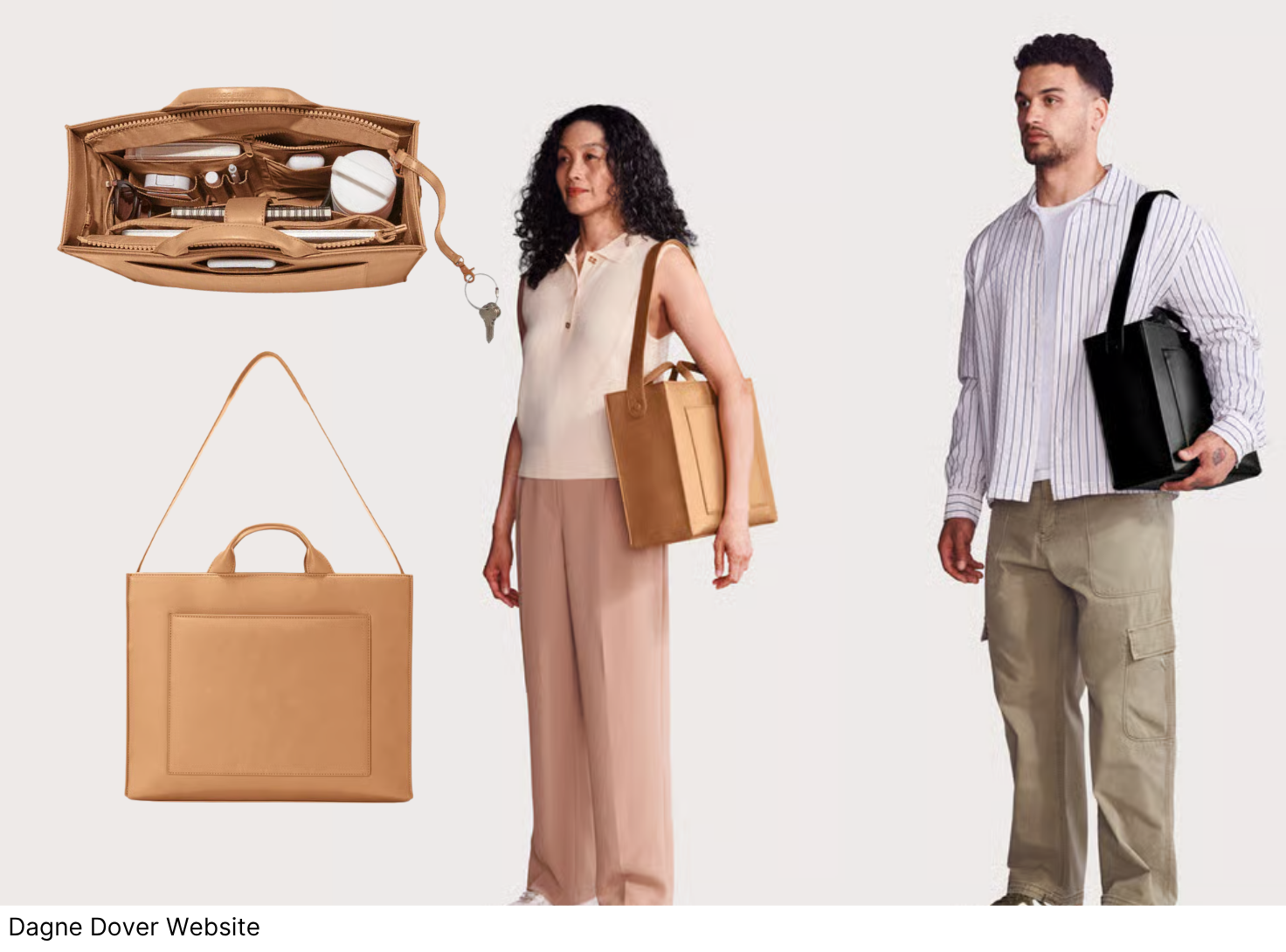 The Daily Tote from Dagne Dover is a commuter’s dream: structured enough to hold its shape, yet roomy enough for your laptop, water bottle, and all those “just in case” items we inevitably carry. Crafted from vegan leather and lined with recycled Repreve® fabric, this tote combines everyday luxury with eco-friendly touches. The water-resistant coating means it can handle unexpected weather, while the smart interior pockets keep your essentials neatly in place. At $155, it’s a sustainable upgrade for the office that you’ll happily carry after hours.