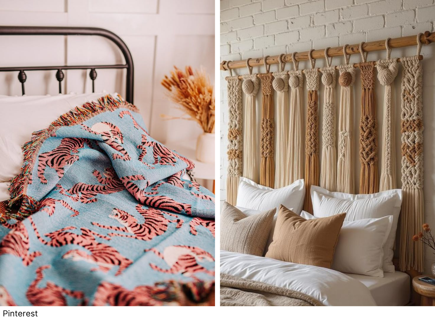 Think fuzzy throw blankets, quilted duvets, shag rugs, or macramé wall hangings. Texture adds instant coziness—your dorm will feel less like a school building and more like a sanctuary.