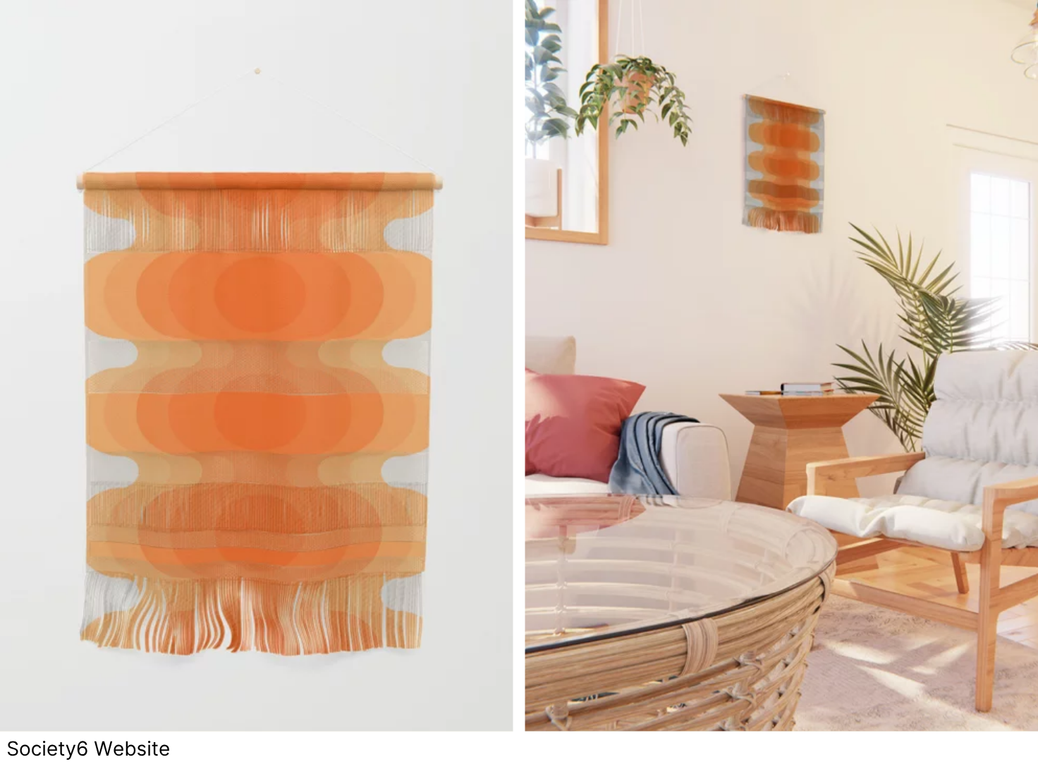 Soft hues, major impact. With its wavy lines and retro creamsicle palette, this textile wall hanging adds an instant sunset glow to any blank space.