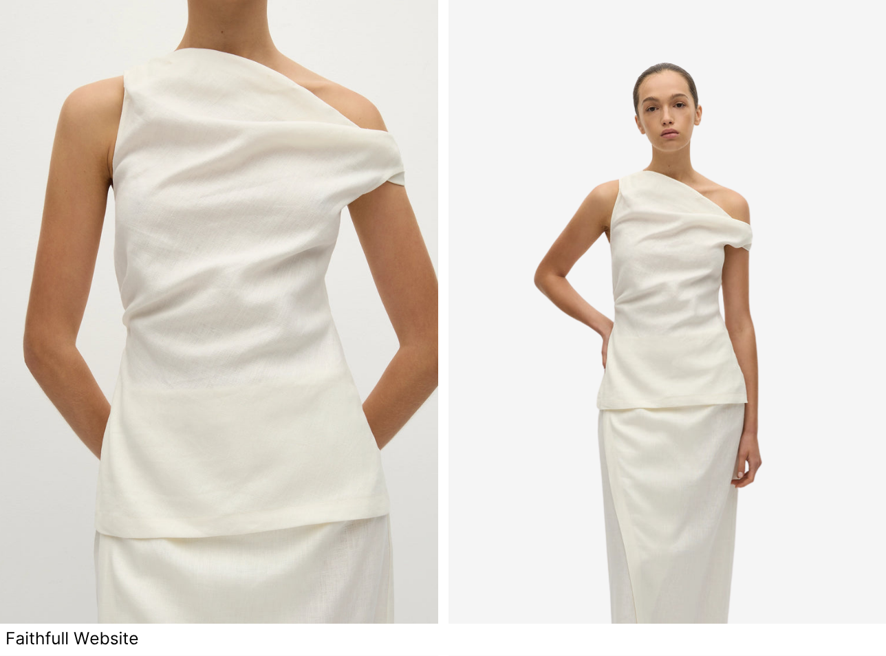 A timeless top, designed from a signature 100% European Flax® linen fabrication in a creamy white. It features an asymmetric one-shoulder neckline with gathering and drape details across the front bodice. Cinching in slightly at the waist, it is a relaxed silhouette that flares out slightly to fit around the hips. Style over the Suis Skirt for effortless yet elevated summer occasionwear.