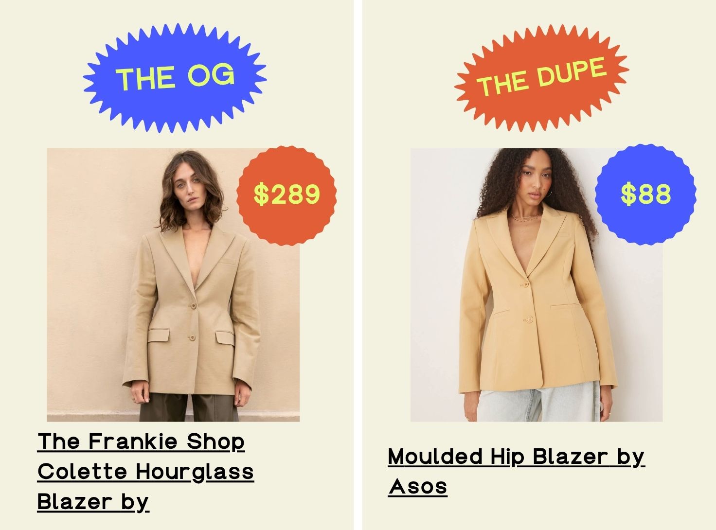 "I couldn’t believe the shape on this! The ASOS version has that same cinched waist and sharp shoulder look that made the Frankie Shop one go viral. Honestly? No one can tell the difference." -Lily