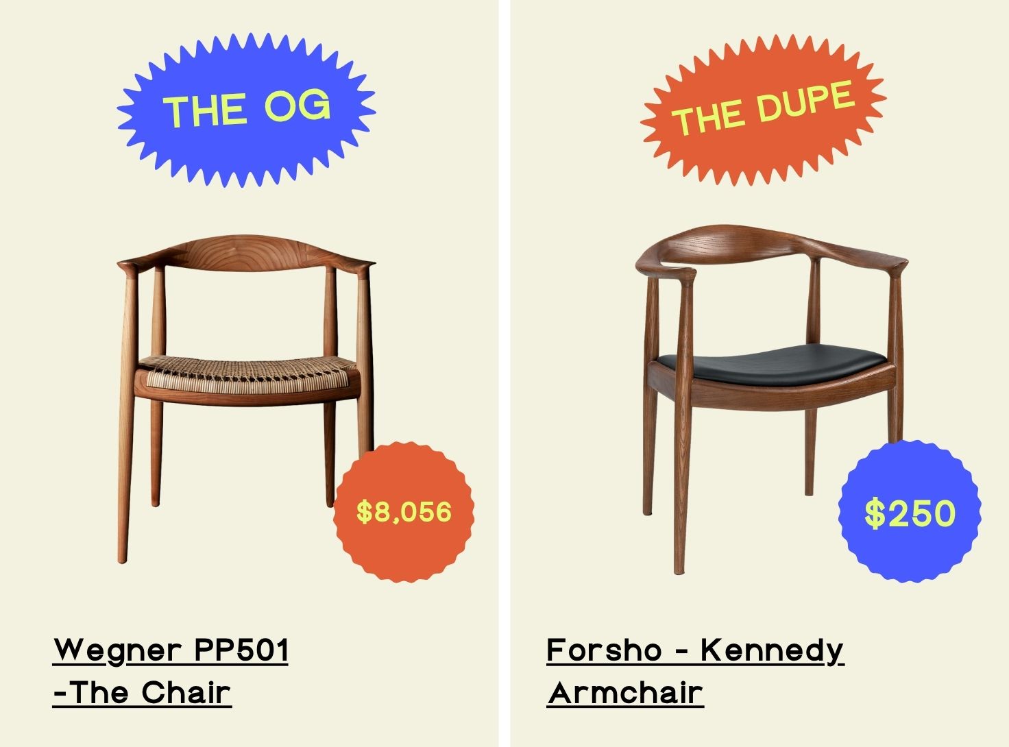 Mid-century dreams, modern price tag. If you’ve been lusting after the Wegner PP501 “The Chair,” this Forsho dupe is for you. Same iconic sculpted back, Danish curve, and design pedigree—without the collector-level pricing.