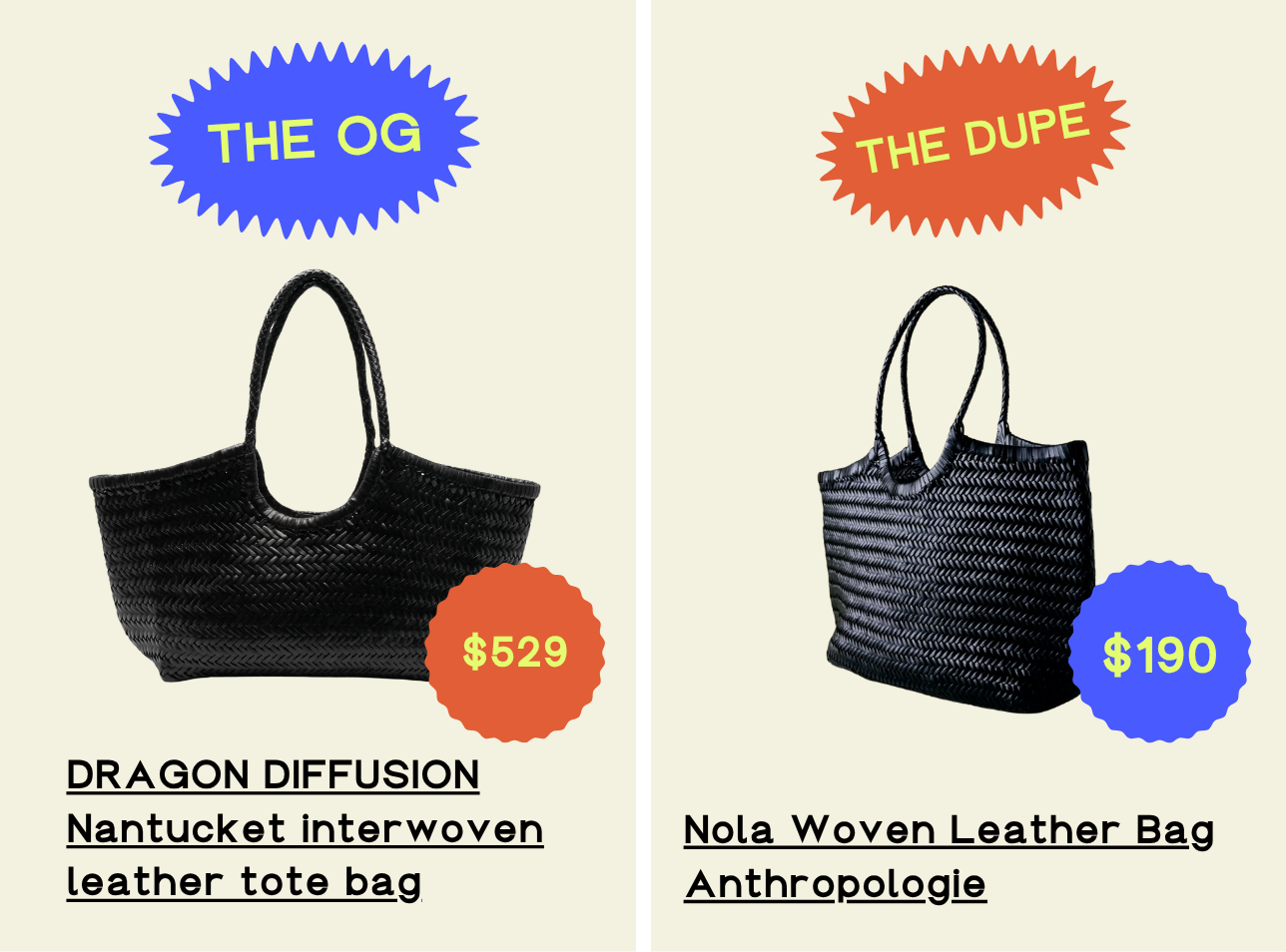 "I’d been eyeing the Dragon Diffusion bag forever but couldn’t commit to the splurge. The Anthropologie Nola Tote totally satisfied my craving for that effortless woven look—plus, the leather feels amazing! I’ve already gotten so many compliments, and no one can tell it’s a dupe!" — Verified Anthropologie Customer