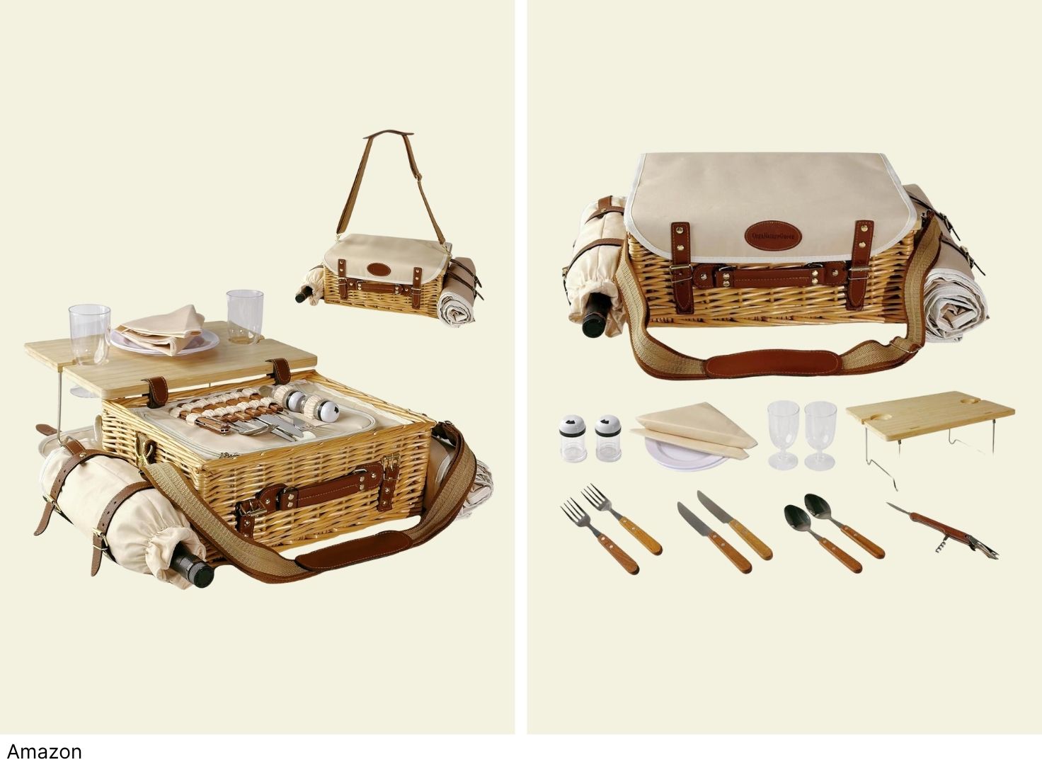 “I am in loooooove! I’ve been wanting a good quality picnic basket for a long time and I’m so happy I came across this one. It includes basically everything but the food- cutlery, cups, plates, napkins. It’s sturdy and insulated and seems to be well-made. It comes with a secure carrying strap. Everything has its own spot, so nothing slides around in transit. Plus it just looks fancy! Could not be happier with this!” -Amazon Buyer