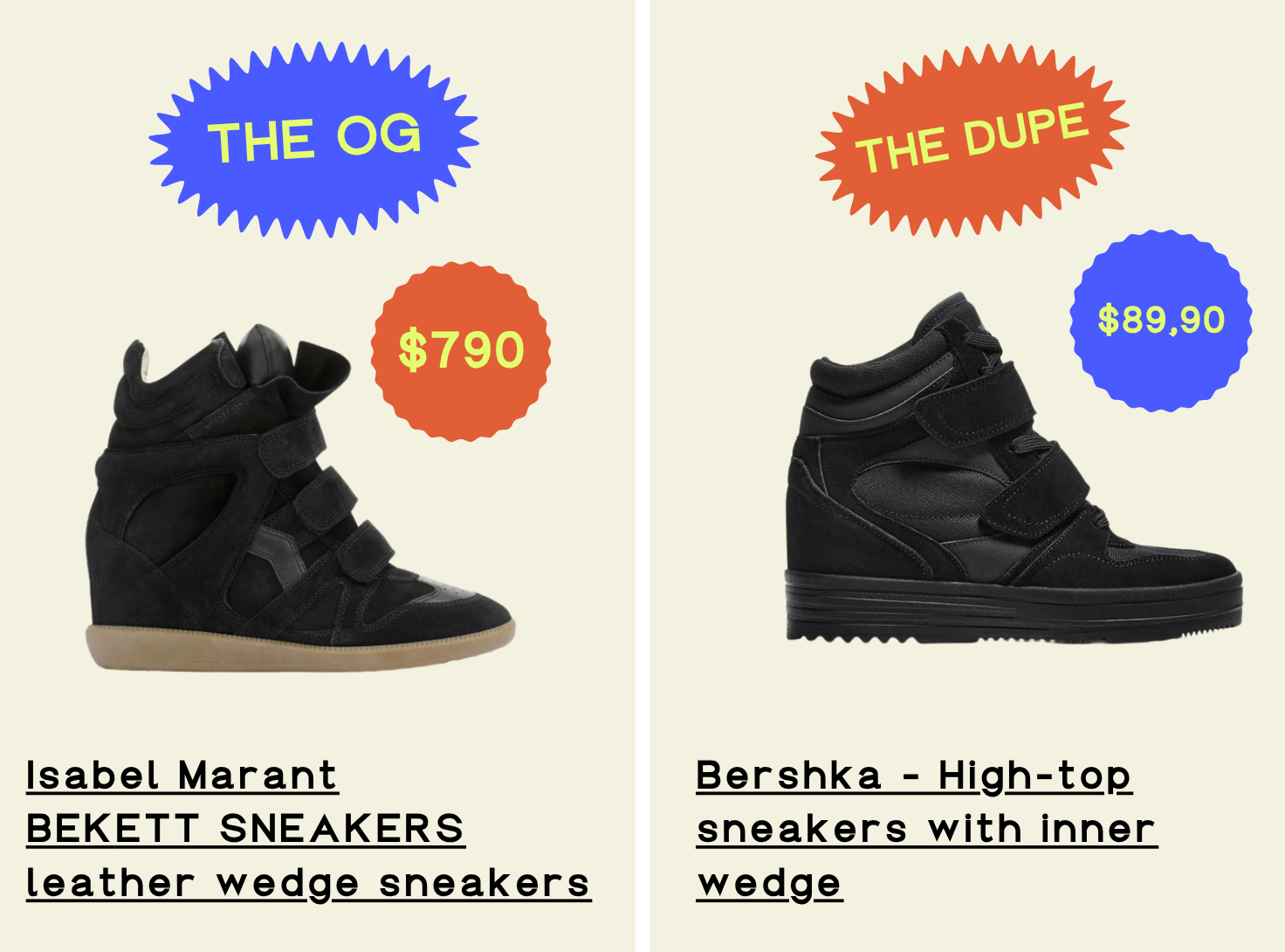 Same street-style lift, way lighter on your wallet — Bershka’s wedge sneaker channels Marant’s iconic cool-girl vibe.