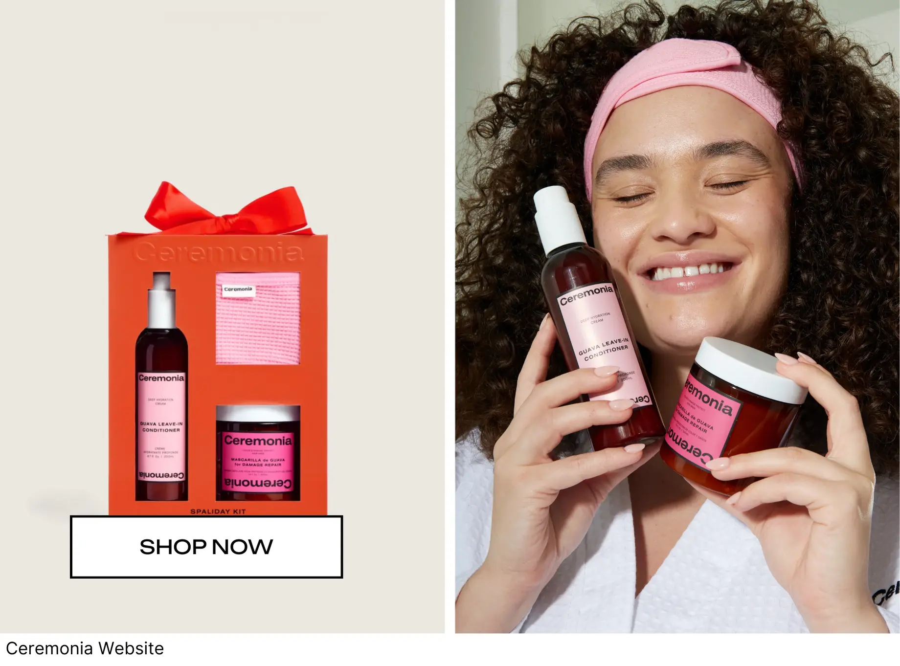 Bring the spa and the shine. Ceremonia’s Guava Spaliday Kit features their iconic Leave-In Conditioner and Hair Mask, both powered by tropical guava and other restorative ingredients. Plus, it comes with a spa headband. It’s glossy hair, gift-wrapped—and it smells like a vacation.