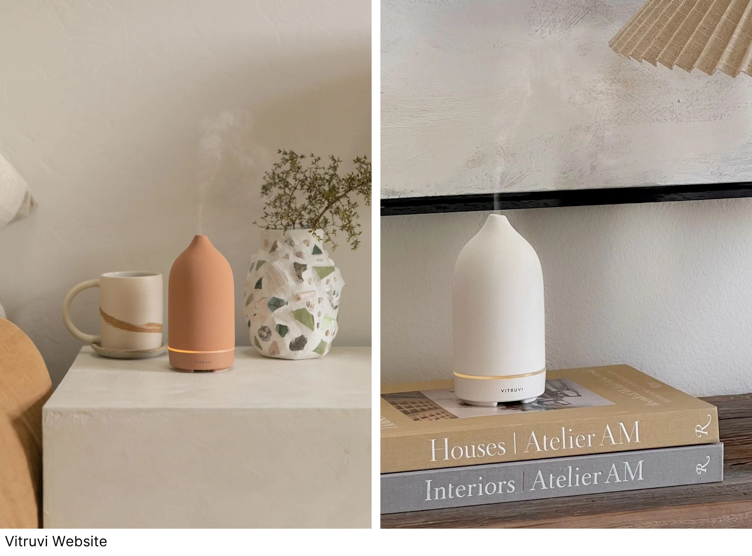 Vitruvi’s Stone Diffuser is the gold standard for stylish scent diffusion. It’s made from matte ceramic, comes in dreamy shades like terracotta and oat, and delivers a fine mist that disperses essential oils for hours. It auto shuts off and has an optional ambient light—perfect for chill fall evenings or morning journaling rituals.