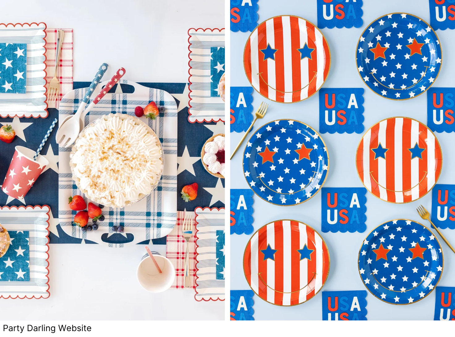 When it comes to curating a picture-perfect Fourth of July celebration, The Party Darling absolutely delivers. From star-spangled tableware to playful garlands and patriotic cake toppers, their collection is bursting with charm and chic, coordinated style. Whether you're hosting an intimate backyard supper or a full-blown BBQ bash, they’ve got all the essentials to make your tablescape pop.