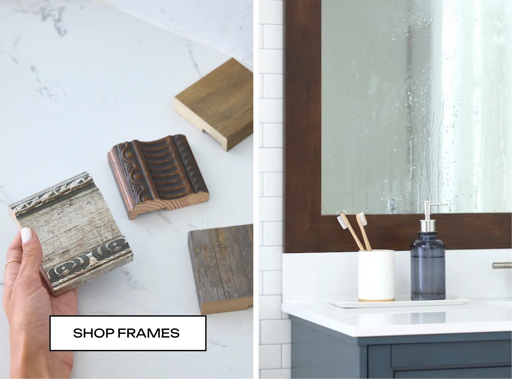 MirrorMate carries over 50 frame styles, but these three stand out for one reason: they work in almost any bathroom, no matter the aesthetic.