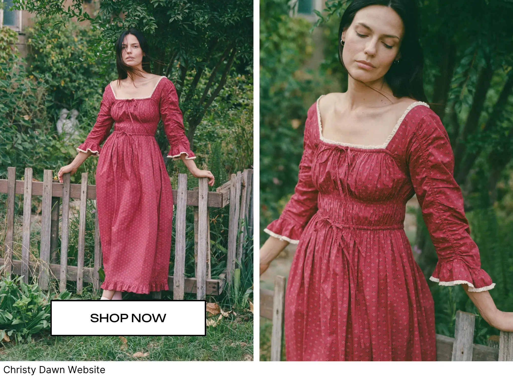 Why we love it: Christy Dawn is known for romantic, vintage-inspired silhouettes made from earth-friendly fabrics and regenerative cotton grown right here in the U.S. Their dresses feel like a warm hug and photograph beautifully—ideal for a cozy fall gathering.