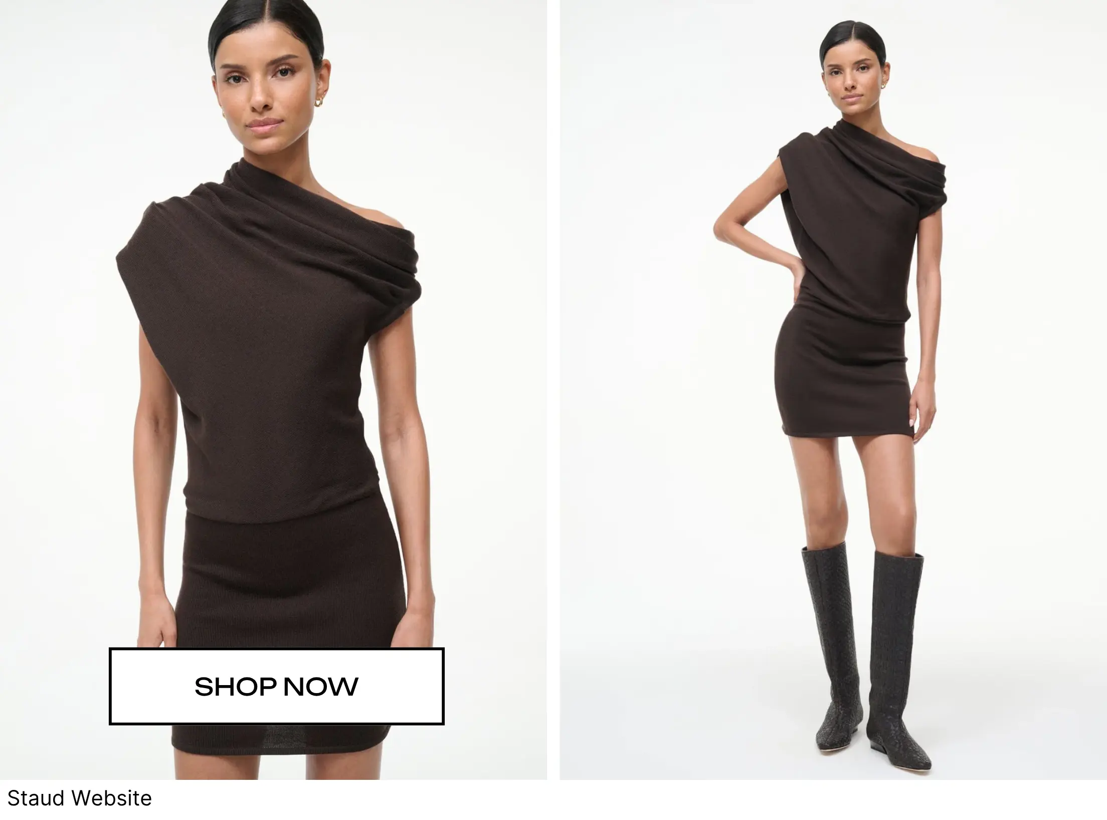 Why we love it: Staud nails the “statement without screaming” look. Their pieces are polished yet playful—fashion-forward silhouettes in wearable tones. It’s the brand you reach for when you want to be a little different, but never too much.