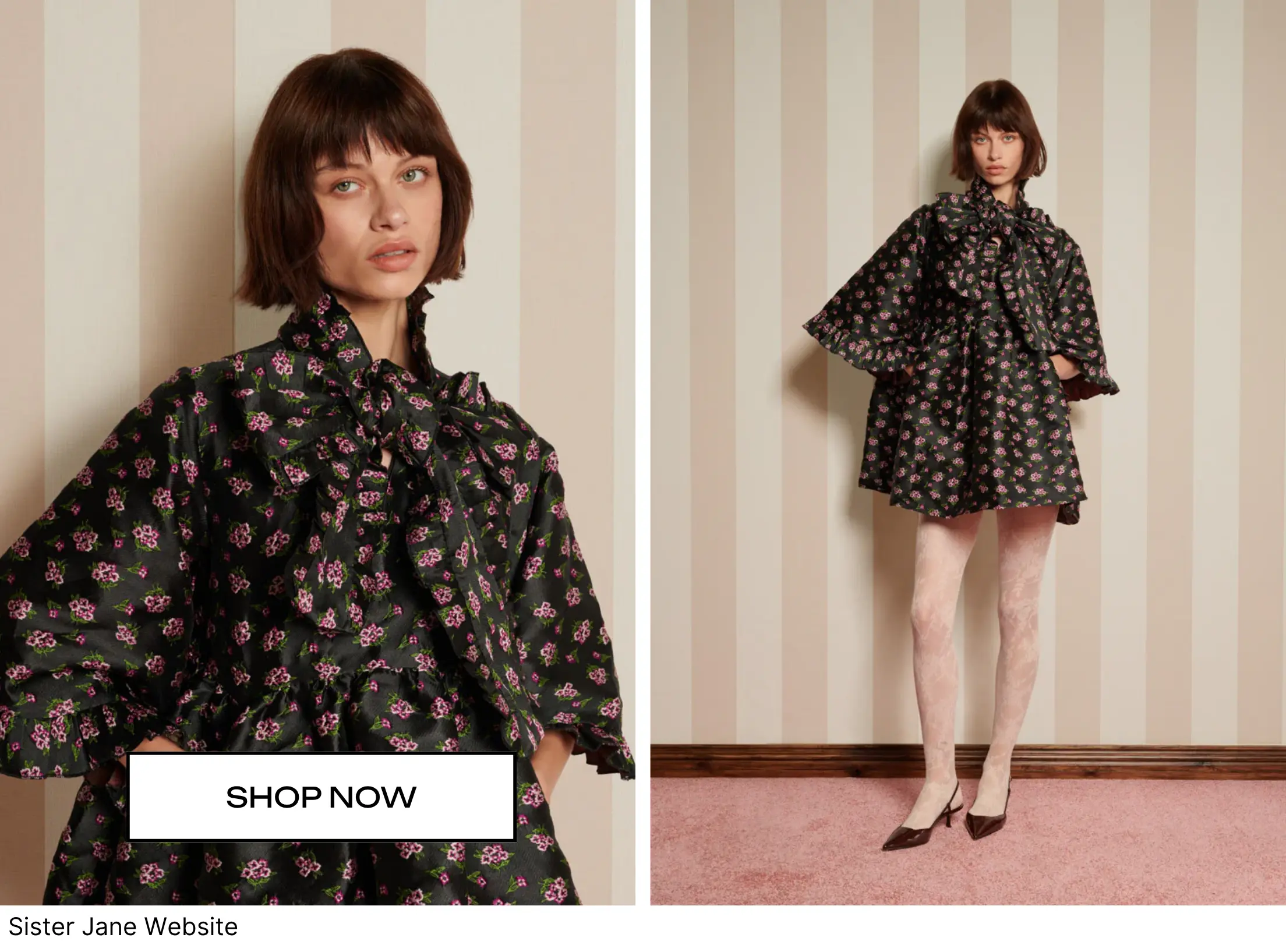 Why we love it: Sister Jane isn’t afraid to go all in on texture, color, and maximalist silhouettes. Based in London, this female-led brand leans into fantasy dressing that still feels wearable—and yes, their minis are made for seasonal celebrations.